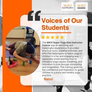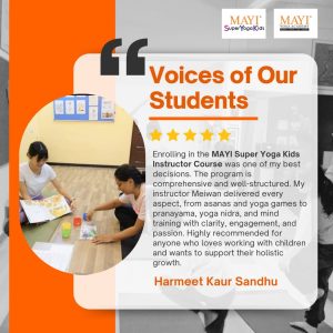 Super Yoga Kids Instructor Course (SYKIC) was born from the understanding of this need to holistically enhance child development. We use fun presentation and dynamic techniques to capture the children’s interest while closely following the traditional yogic teachings.
